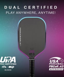 Sự uy tín của một cây vợt thi đấu không chỉ đến từ thương hiệu mà còn từ sự công nhận của các tổ chức pickleball hàng đầu. Joola Perseus 3S Dual 14mm tự hào đạt chứng nhận của cả UPA (Hiệp hội Pickleball Hoa Kỳ) và USAPA (Hiệp hội Pickleball Hoa Kỳ).
