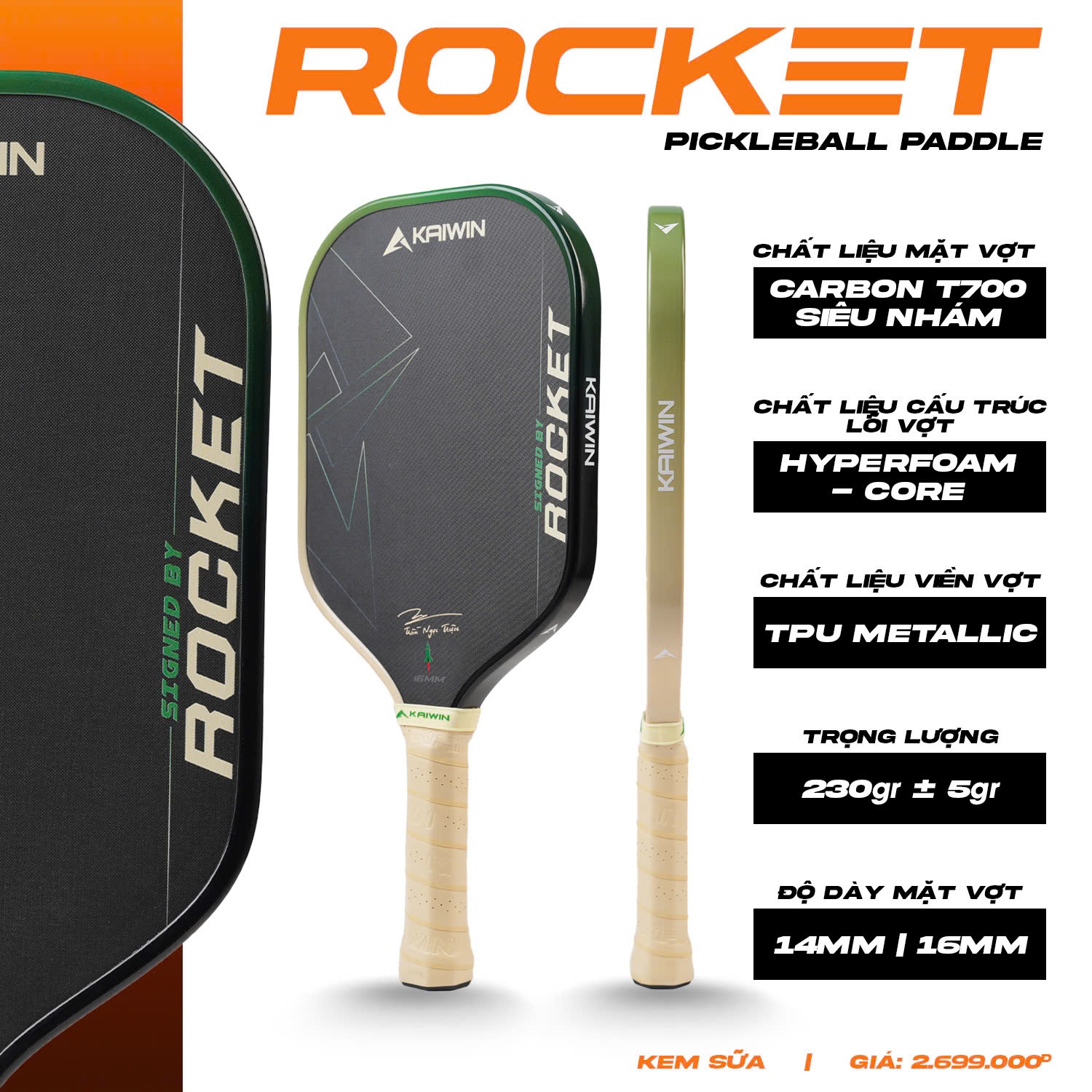Vợt Pickleball Kaiwin Rocket – Kem sữa