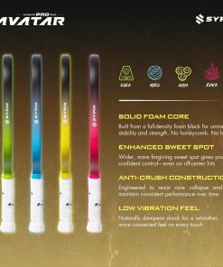 Diện tích mặt vợt tiêu chuẩn kết hợp công nghệ HyperZone SweetSpot giúp mở rộng tối ưu điểm ngọt, hạn chế đánh hụt và nâng cao hiệu suất. Tay cầm dài 14.9 cm cho phép cầm nắm chắc chắn bằng cả hai tay, hỗ trợ đắc lực cho những cú đánh cần sức mạnh và độ chính xác cao. Với 5 phiên bản màu sắc nổi bật, thiết kế của Sypik Avatar mang đến vẻ ngoài năng động và thời thượng, giúp bạn nổi bật trên sân đấu.